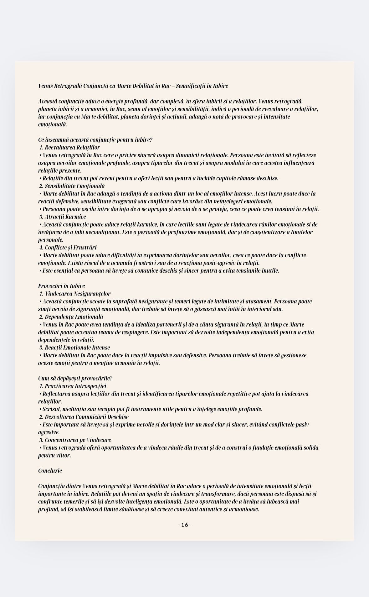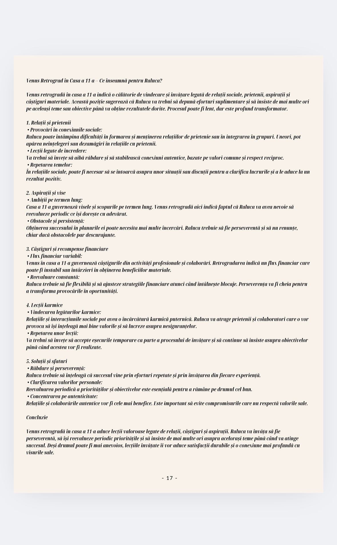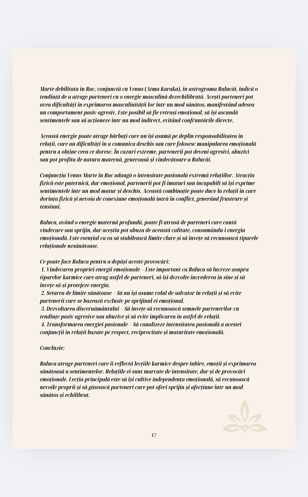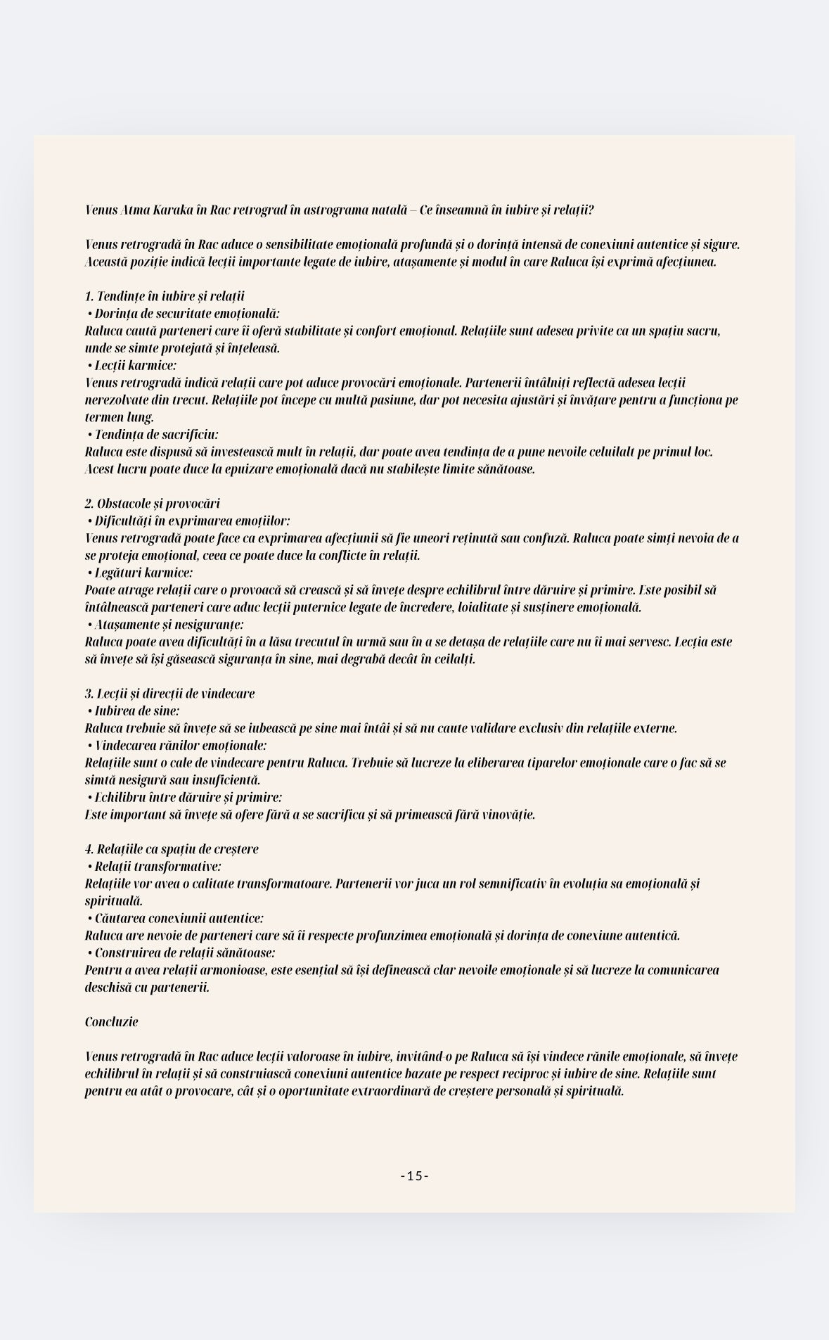 • Se detaliază modul în care poziționarea Planetei Sufletului în astrograma ta influențează relațiile, cariera, sănătatea și evoluția spirituală.